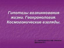 Гипотезы возникновения жизни Геохронология Космогонические взгляды Ст преподаватель