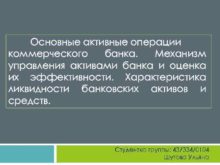 Основные активные операции коммерческого банка Механизм управления активами