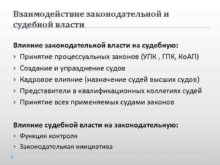 Взаимодействие законодательной и судебной власти Влияние законодательной власти