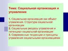 Тема Социальная организация и управление 1 Социальная организация