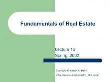 Fundamentals of Real Estate Lecture 16 Spring 2002