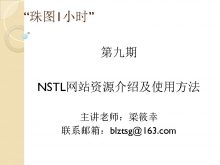 珠图 1小时 第九期 NSTL网站资源介绍及使用方法 主讲老师 梁筱幸 联系邮箱 blztsg 163 com
