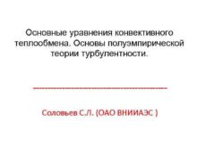 Основные уравнения конвективного теплообмена Основы полуэмпирической теории турбулентности