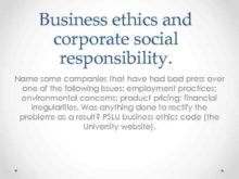 Business ethics and corporate social responsibility Name some