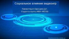 Социальное влияние видеоигр Презентация Одинцова Д Г Студента