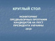 КРУГЛЫЙ СТОЛ МОНИТОРИНГ ПРЕДВЫБОРНЫХ ПРОГРАММ КАНДИДАТОВ НА ПОСТ