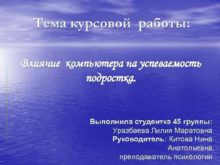 Тема курсовой работы Влияние компьютера на успеваемость подростка