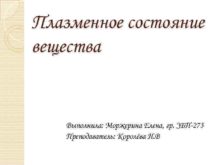 Плазменное состояние вещества Выполнила Моржерина Елена гр ЗБП-273