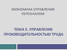 ЭКОНОМИКА УПРАВЛЕНИЯ ПЕРСОНАЛОМ ТЕМА 5 УПРАВЛЕНИЕ ПРОИЗВОДИТЕЛЬНОСТЬЮ ТРУДА