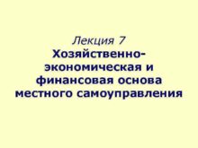 Лекция 7 Хозяйственноэкономическая и финансовая основа местного самоуправления