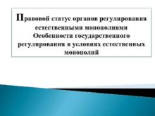 Правовой статус органов регулирования естественными монополиями Особенности государственного