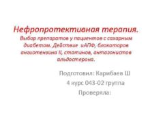 Нефропротективная терапия Выбор препаратов у пациентов с сахарным