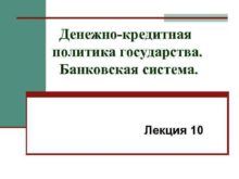 Денежно-кредитная политика государства Банковская система Лекция 10