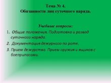 Тема 4 Обязанности лиц суточного наряда Учебные