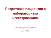 Подготовка пациентов к лабораторным исследованиям Лекция для студентов