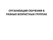 ОРГАНИЗАЦИЯ ОБУЧЕНИЯ В РАЗНЫХ ВОЗРАСТНЫХ ГРУППАХ Особенности