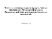 Частное и полное приращение функции Частные производные Полный