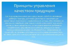 Принципы управления качеством продукции Система управления качеством представляет