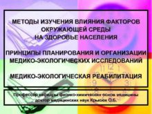 МЕТОДЫ ИЗУЧЕНИЯ ВЛИЯНИЯ ФАКТОРОВ ОКРУЖАЮЩЕЙ СРЕДЫ НА ЗДОРОВЬЕ