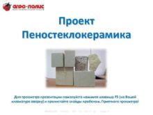 Проект Пеностеклокерамика Для просмотра презентации пожалуйста нажмите клавишу