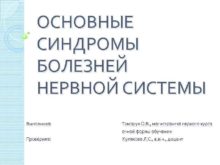 ОСНОВНЫЕ СИНДРОМЫ БОЛЕЗНЕЙ НЕРВНОЙ СИСТЕМЫ Выполнила Томарук О