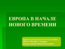 ЕВРОПА В НАЧАЛЕ НОВОГО ВРЕМЕНИ Презентацию выполнила учитель