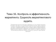 Тема 16 Контроль и эффективность маркетинга Сущность маркетингового