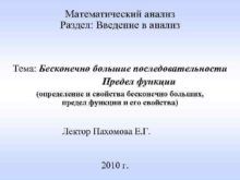 Математический анализ Раздел Введение в анализ Тема Бесконечно
