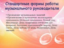Стандартные формы работы музыкального руководителя Проведение музыкальных