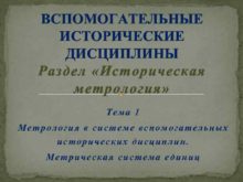 ВСПОМОГАТЕЛЬНЫЕ ИСТОРИЧЕСКИЕ ДИСЦИПЛИНЫ Раздел Историческая метрология Тема 1