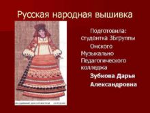 Русская народная вышивка Подготовила студентка 3 Бгруппы Омского