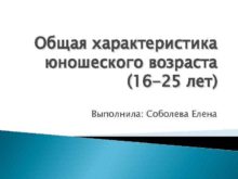 Общая характеристика юношеского возраста 16 -25 лет Выполнила