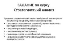 ЗАДАНИЕ по курсу Стратегический анализ Провести стратегический анализ