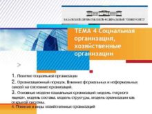 ТЕМА 4 Социальная организация хозяйственные организации 1 Понятие
