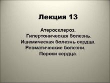 Лекция 13 Атеросклероз Гипертоническая болезнь Ишемическая болезнь сердца