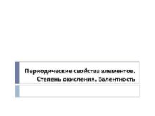 Периодические свойства элементов Степень окисления Валентность Энергетические