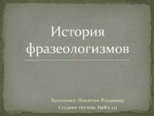 История фразеологизмов Выполнил Никитин Владимир Студент группы Нв