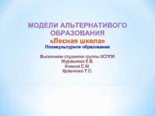 МОДЕЛИ АЛЬТЕРНАТИВОГО ОБРАЗОВАНИЯ Лесная школа Поликультурное образование Выполнили