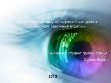 Презентация на тему Представление цвета в компьютере Цветовые