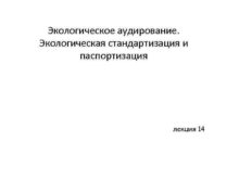 Экологическое аудирование Экологическая стандартизация и паспортизация лекция 14