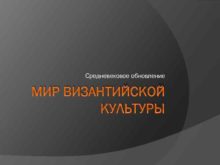 Средневековое обновление МИР ВИЗАНТИЙСКОЙ КУЛЬТУРЫ Особенности Византийского