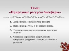 Тема Природные ресурсы биосферы 1 Антропогенное воздействие на