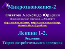 Микроэкономика-2 Филатов Александр Юрьевич Главный научный сотрудник ШЭМ