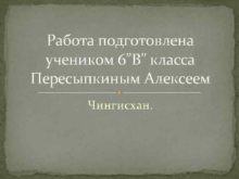 Работа подготовлена учеником 6 В класса Пересыпкиным Алексеем Чингисхан
