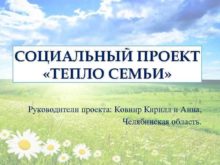 СОЦИАЛЬНЫЙ ПРОЕКТ ТЕПЛО СЕМЬИ Руководители проекта Ковнир Кирилл