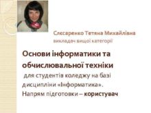 Слєсаренко Тетяна Михайлівна викладач вищої категорії Основи інформатики