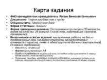 Карта задания ФИО преподавателя преподаватель Россик Вячеслав Евгеньевич