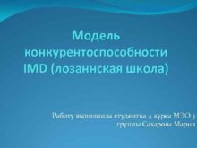 Модель конкурентоспособности IMD лозаннская школа Работу выполнила студентка