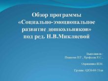 Обзор программы Социально-эмоциональное развитие дошкольников под ред Н
