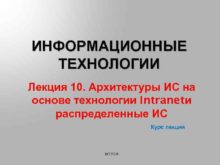 ИНФОРМАЦИОННЫЕ ТЕХНОЛОГИИ Лекция 10 Архитектуры ИС на основе
